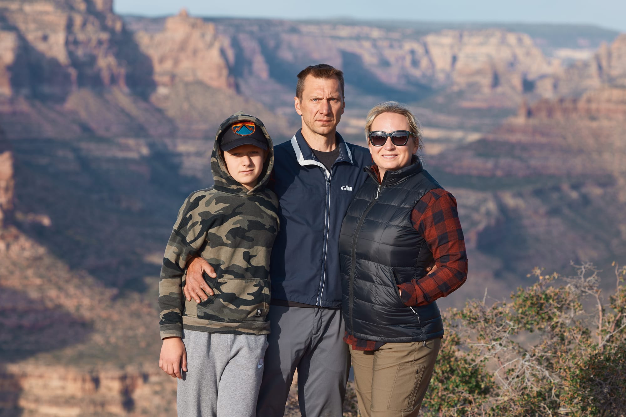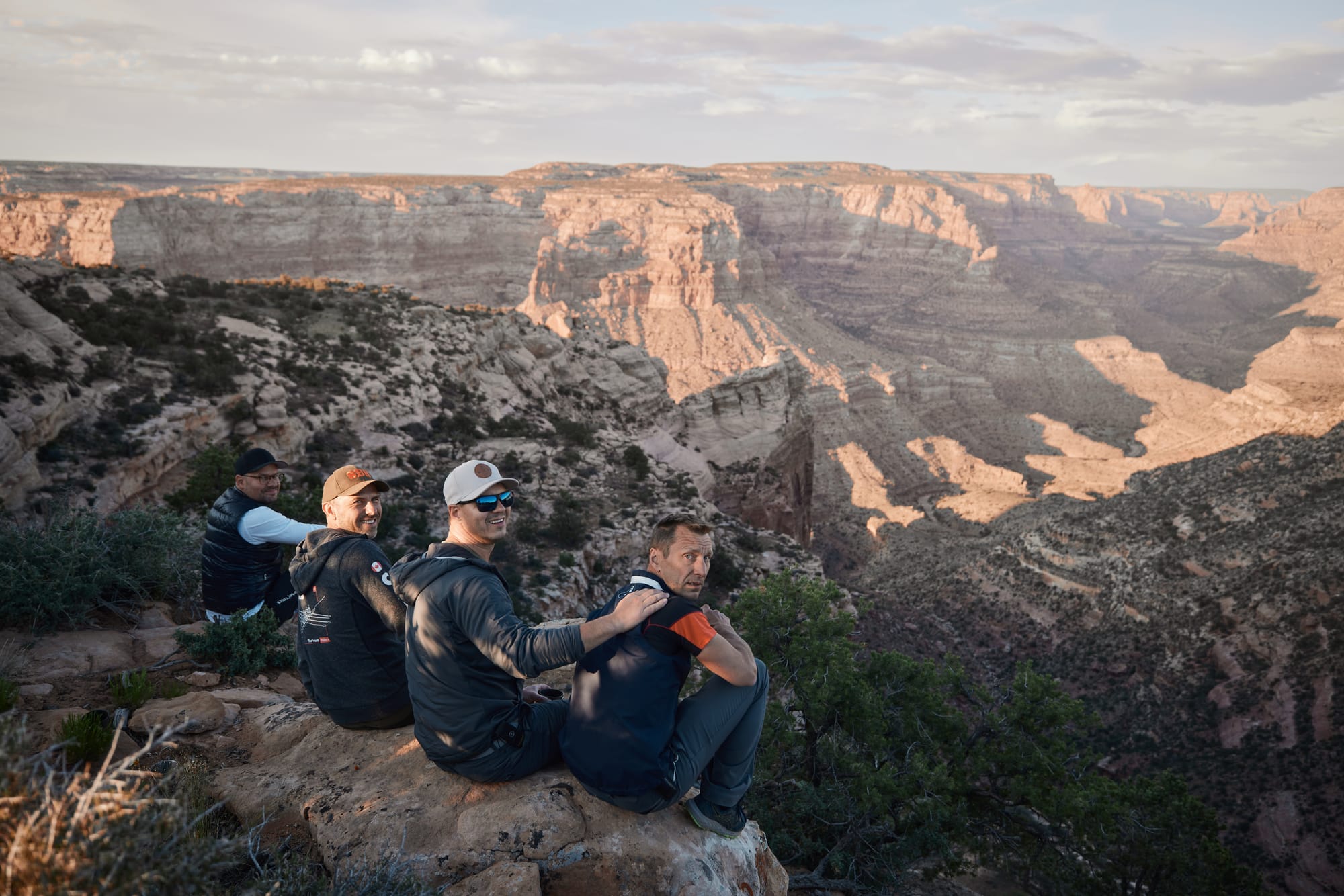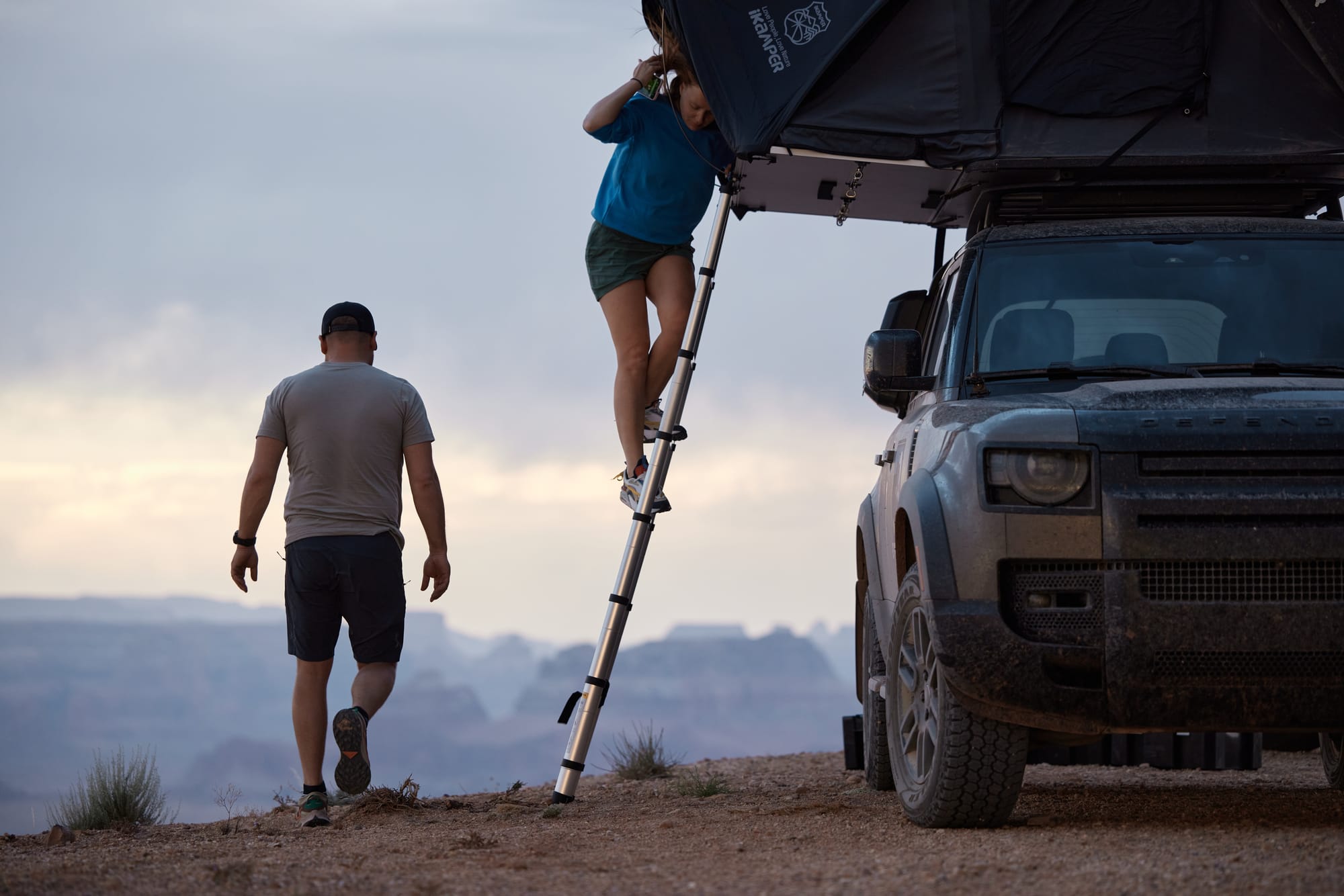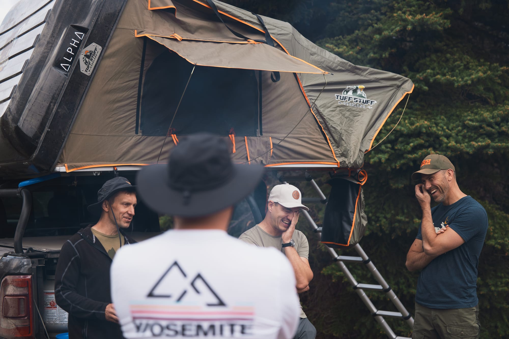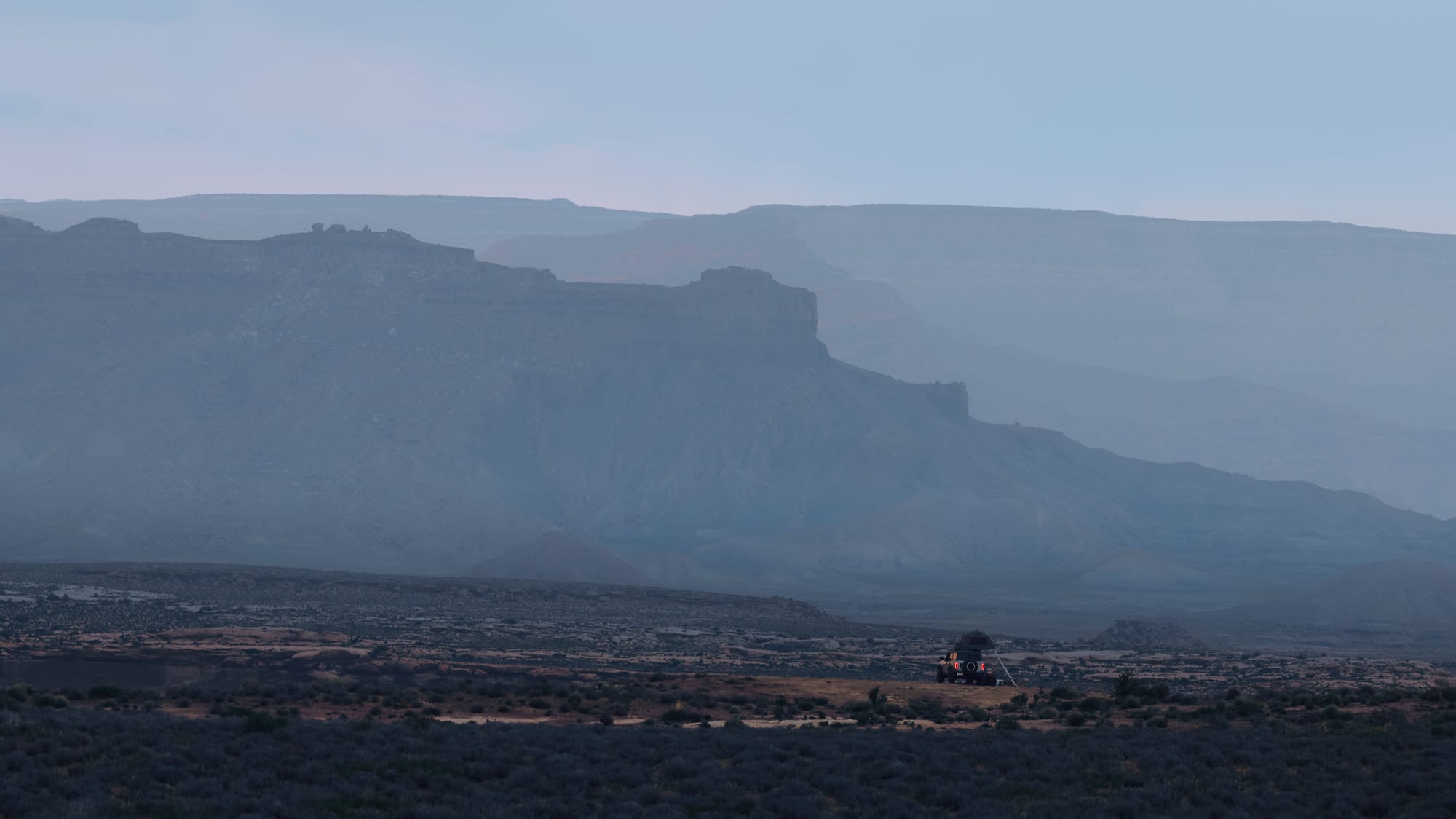 A gust of wind shakes our five square miles of tenting as the dark blue clouds extinguish the last rays of the sun. Sipping a beer with one hand, I hold the aluminum tent pole with the other to reduce the agitated flapping. Martin's hat is ripped off his head and sent towards the chasm of the canyon, followed by our laughter as Martin scrambles to catch the evasive prey. There's more of us now holding on to the tent as the wind speed picks up and we jokingly try to calculate the combined mass of our crew and the force necessary to paraglide Vaidas' tent. After a few chairs are dragged away by the wind, kids decide this adventure is best left to the adults and, unsheathing their iPads, clamber into one of the trucks to resume their activities undisturbed.