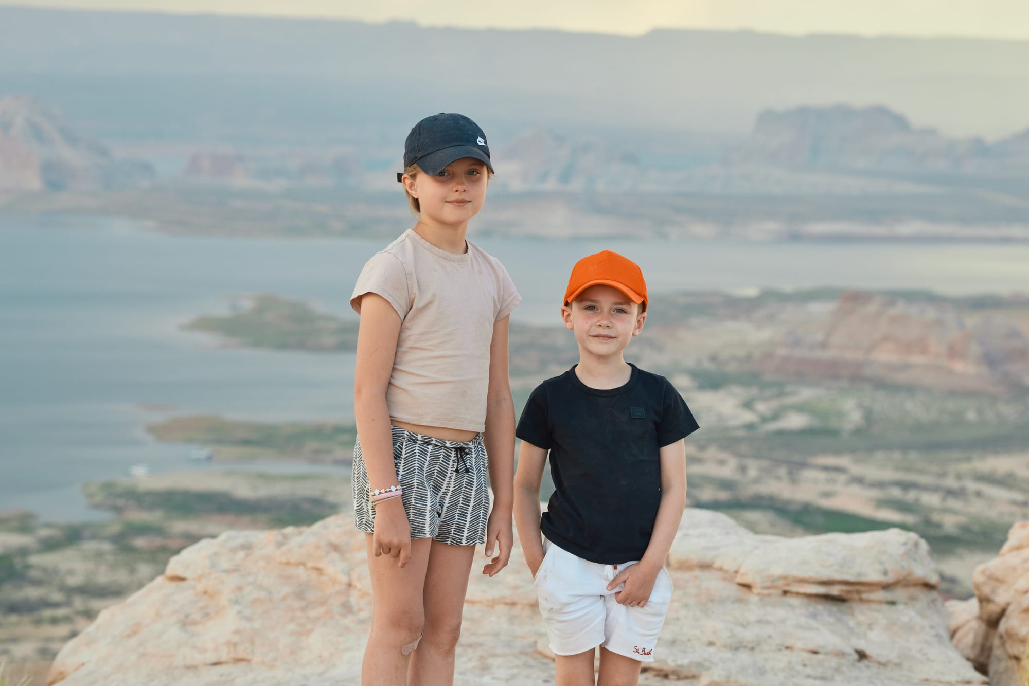 We go for a short hike around the edge of the canyon to observe the lazy curvature of the Colorado river as it continues its journey South. A layer of thin clouds has hidden the sun, and everything gets painted in an eerie yellow cast, reflective light picking up the color of rock under our feet. We notice another truck in the distance, slowly rocking over the stone path that leads to camp and are thrilled to realize it's the missing Defender and its banged-up crew, back with a blessing from a doctor in Moab. One moment the flock of kids carefully examines Sebas' new haircut and bandages, the next they're all back to making noise and playing games as if nothing ever happened.