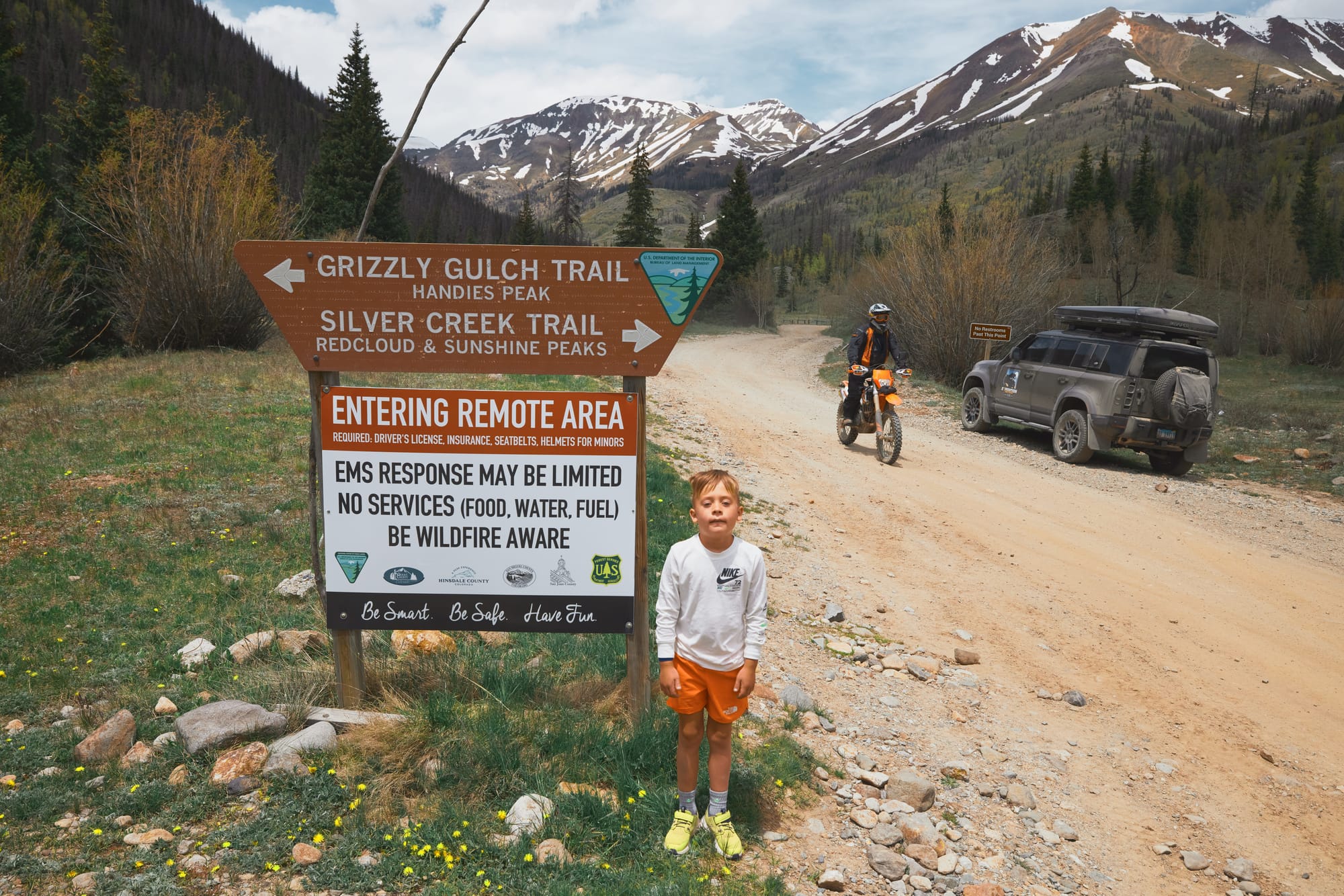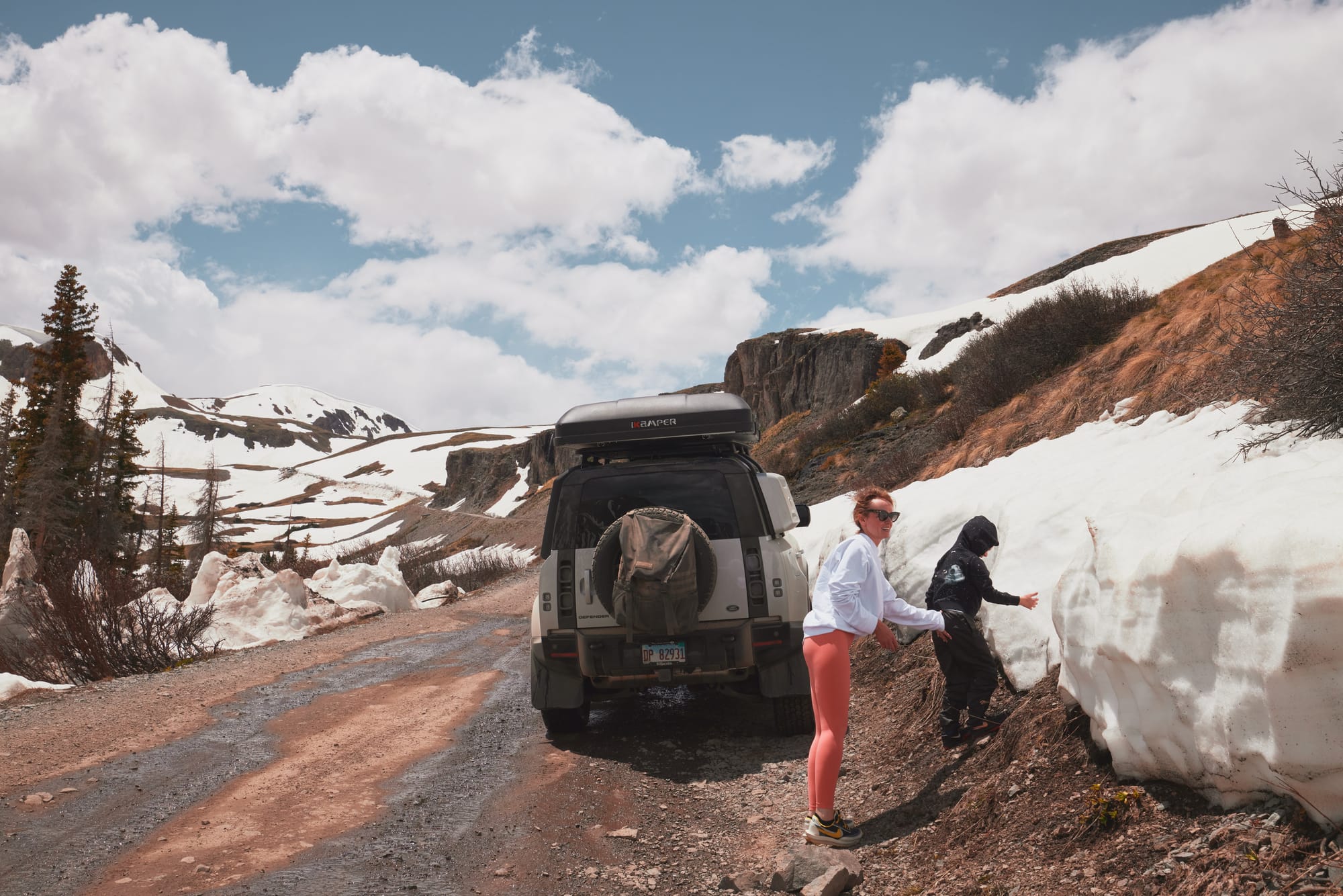 Our plan for the day is to drive through Lake City, Colorado and take on Engineer Pass – a famous trail that is part of the Alpine Loop, a 25+ mile adventure of higher complexity that takes up to five hours to traverse. We refuel our caravan in Lake City and discover from the friendly station attendant that it has been a cold spring, big surprise, and the pass is… impassable due to snow. I call the ranger station, but it's a holiday and no one picks up. Day two and the plan is already falling apart. Scrambling in Gaia I figure that we can cross the mountain range through the Southern side of the Alpina Loop, called the Cinnamon Pass. Engineer sounds more technical and exciting, but it'll have to do. We flag a local in a lifted pickup truck and are happy to find that Cinnamon Pass is indeed open.