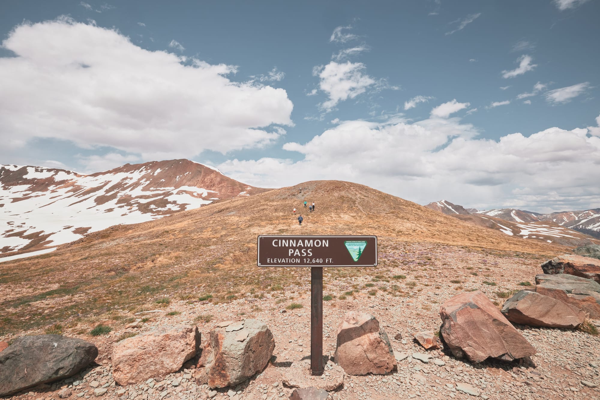 Further up the mountain the path narrows with little to no room for safe passing of inbound traffic. Cresting another hill, I see six Jeep Wranglers descending towards us. I don't want to imagine the necessary acrobatics were the two groups to meet on one of the switchbacks, so I speed up and ask the descending group to hold and wait. By the looks of it they are a group of rentals, middle aged couples on an adventure led by a tour guide. The open-carry, cowboy-hat-wearing guide pops out of his vehicle and comes to talk to me, frustrated with the traffic. I ask for patience and inform we're hauling a trailer up the path, which would make passing dangerous. The guides' raised eyebrows and expletives express his opinion of overlanders that bring hitched trailers up Cinnamon pass, and I have the uncomfortable feeling of underestimating the trail.